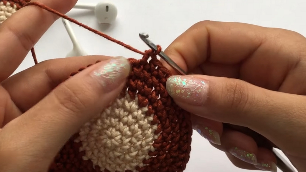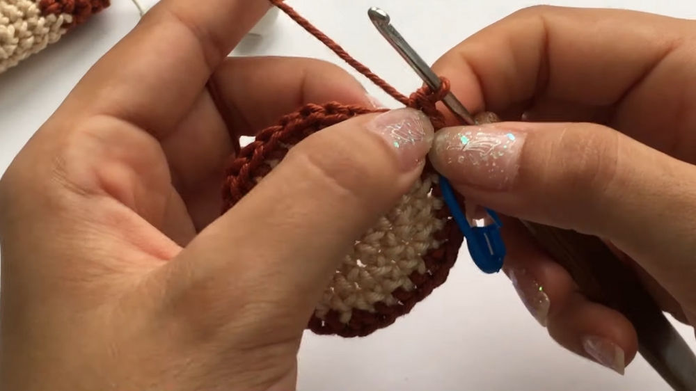 The base is built with six single crochets and gradually increased stitch by stitch to achieve the desired circular shape. By adding strategically placed increases in each round, the bear’s base begins to take form.