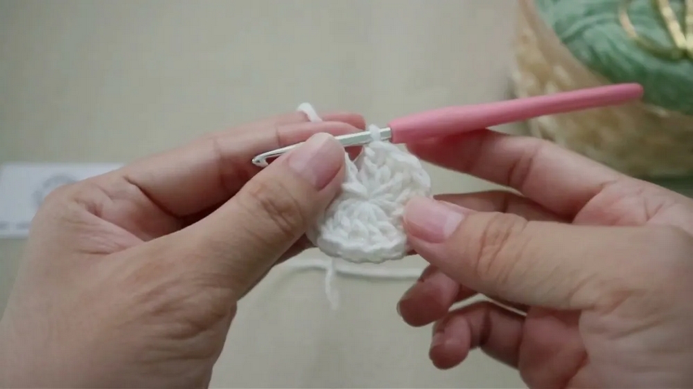 - Make 14 double crochets into the magic circle, creating a total of 15 stitches.