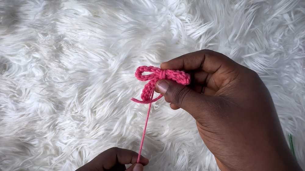 - Use the long tail to wrap the center section tightly, forming a bow.