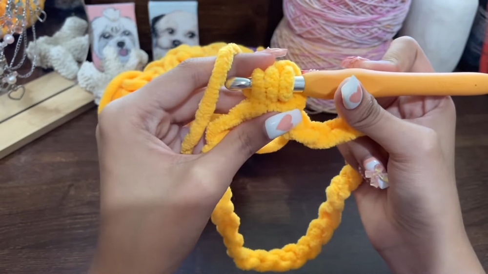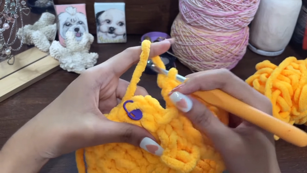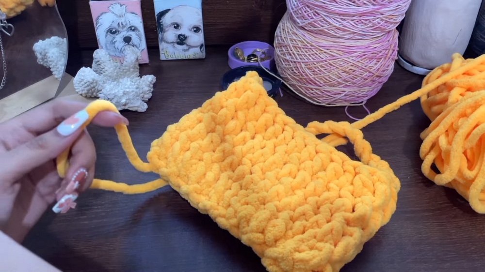 - Complete 4 rows of double crochet (or adjust based on the desired height of your bag).
