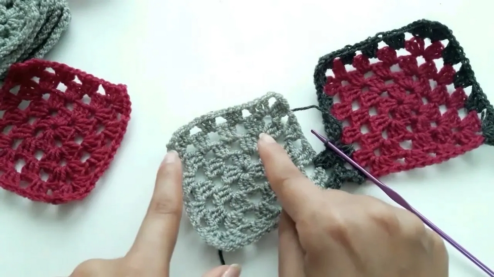 Tip: When joining the granny squares, try to keep the tension consistent to ensure the seams lie flat and look uniform.