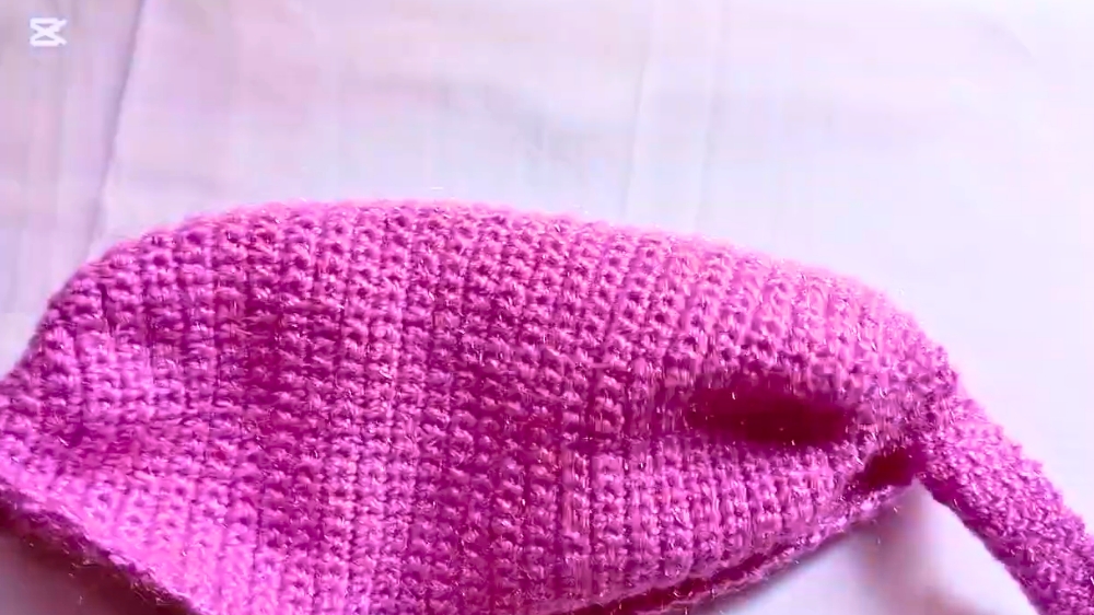 In the middle section, each row starts with turning chains, then alternates double crochets and chain-two spaces to keep an open yet snug texture.Keep the stitch count constant to maintain straight edges.