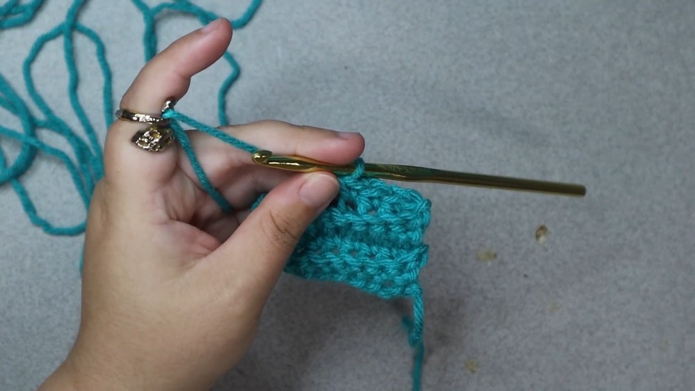 - Row 1: Sc in 2nd ch, sc across (9 sc).