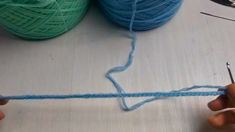 The process involves making a large rectangle and then sewing the sides to create the final shape. Using different colors of yarn allows you to match it with any outfit easily.