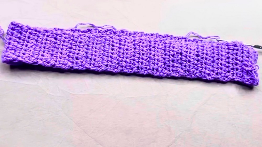 - Repeat this row until you reach your waist measurement (the band will stretch, so work slightly less than the required inches. For example: If your waist measures 29″, make your band 25–26″, as it will stretch during wear).