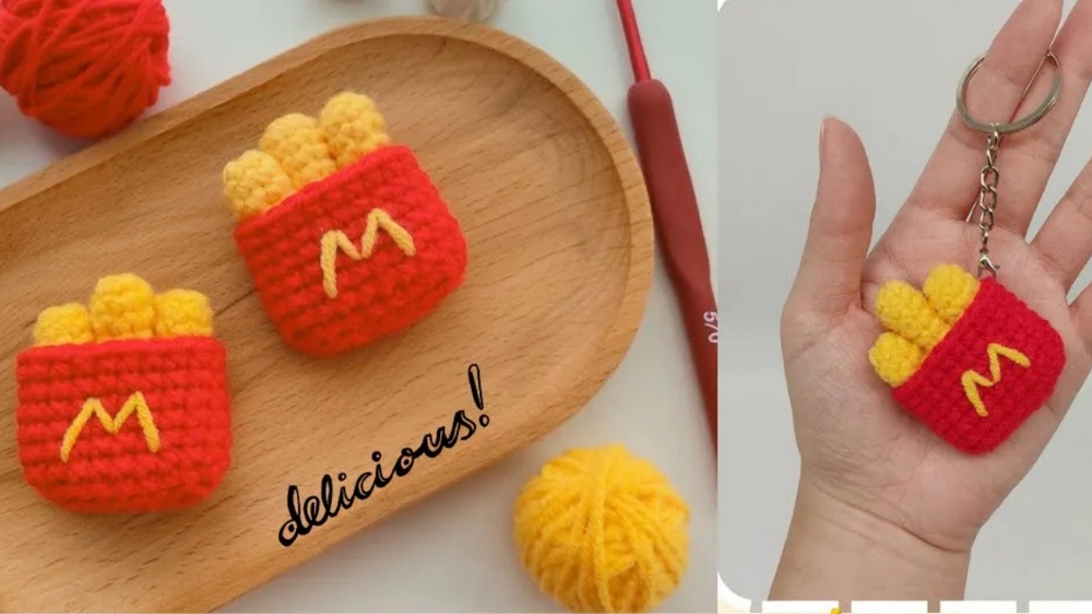 - Customizable: You can experiment with different colors and embellishments, such as the choice of yarn colors for fries and the container.