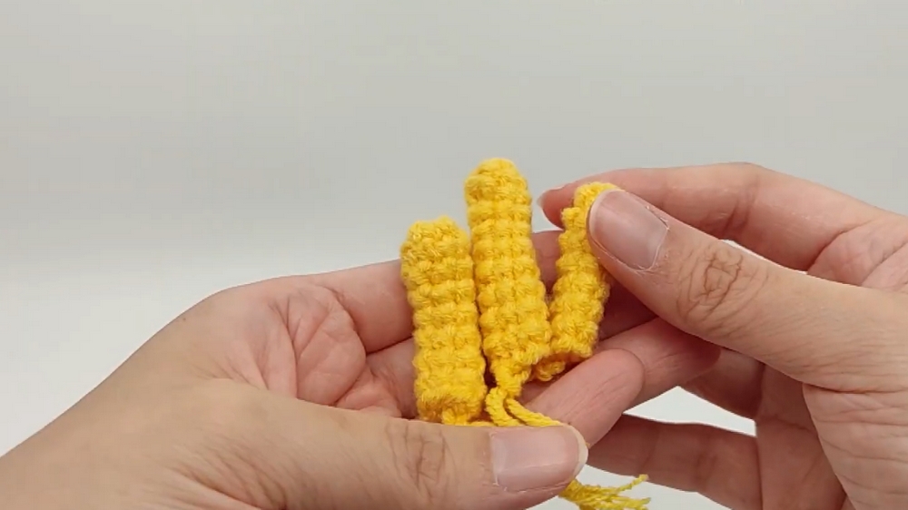 - Repeat for Fries: Make two pieces with eight rows each and one longer piece with an additional two rows.