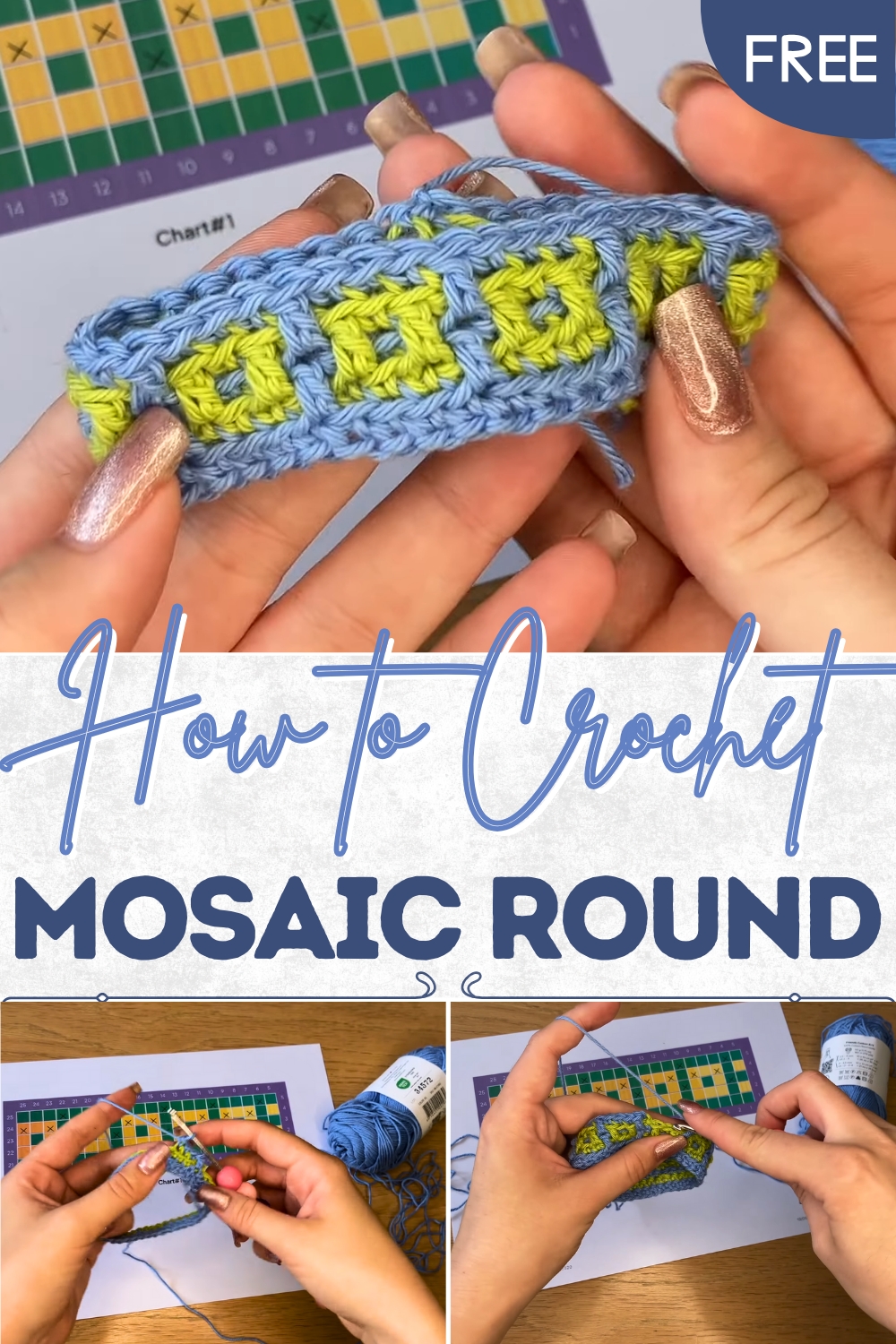 This mosaic crochet pattern unlocks a new skill: creating circular designs through crochet in the round. By mastering this technique, you’ll extend your creative possibilities to include wearables and other dimensional projects. The detailed instructions and guidance make this challenging method enjoyable and achievable for intermediate crocheters. Whether you follow the basic chart from the pattern or tackle more complex patterns later, this skill will elevate your crochet game. Keep practicing, and soon you’ll be able to craft stunning projects using mosaic crochet in the round.