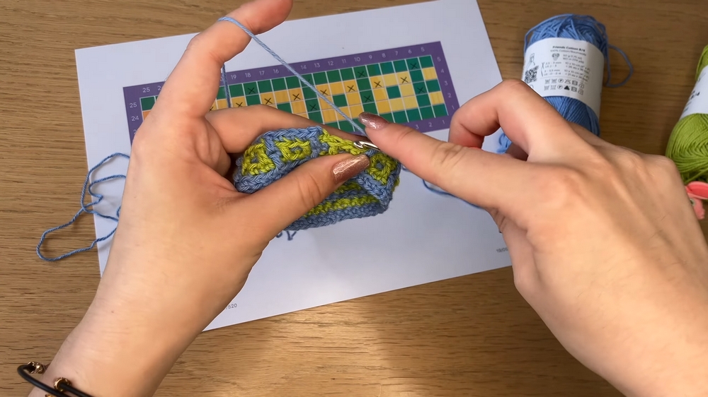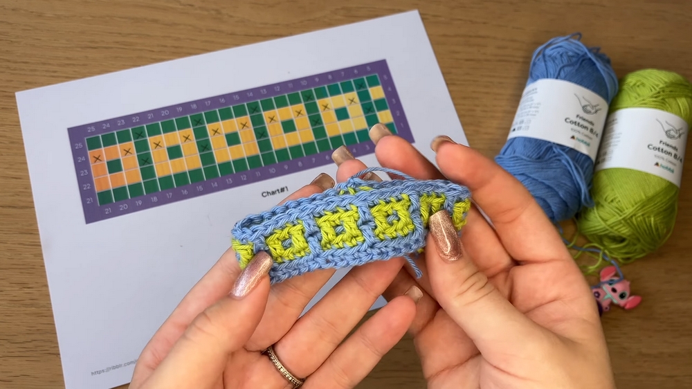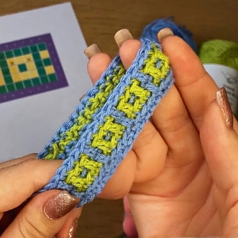 Beginners who have tried mosaic crochet before can also try this with a little patience and practice.