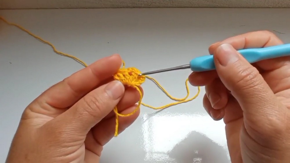 - Make a magic ring by wrapping the yarn around your fingers and securing it.
