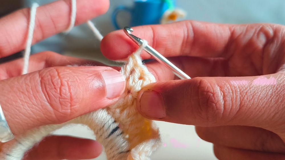 - Repeat the process of creating two double crochets in each stitch from the previous row.