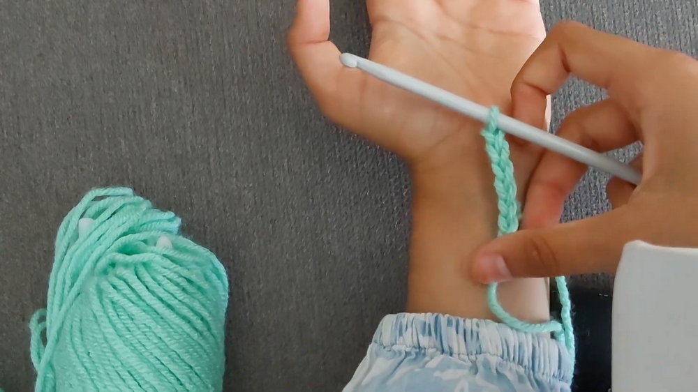 - Chain 8 stitches (or adjust chain length based on your wrist size).