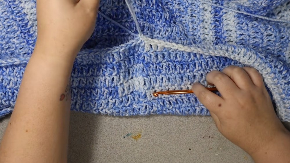 - When you run out of yarn mid-row, overlap old and new yarn, tie both with a strong knot, and continue crocheting over the tails for extra security.