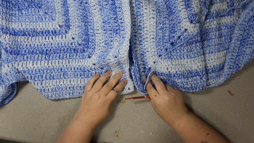 - Alternatively, attach yarn and sl st across the seam for quicker joining.