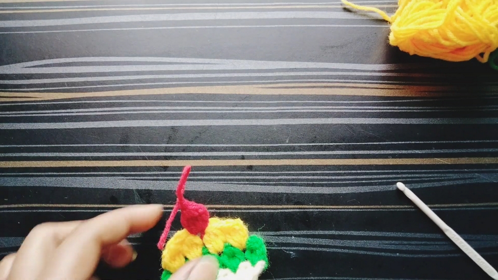 - For the “cherry” part (rounded portion created with clusters), repeat the incomplete DC process multiple times in the same stitch to create additional roundness.