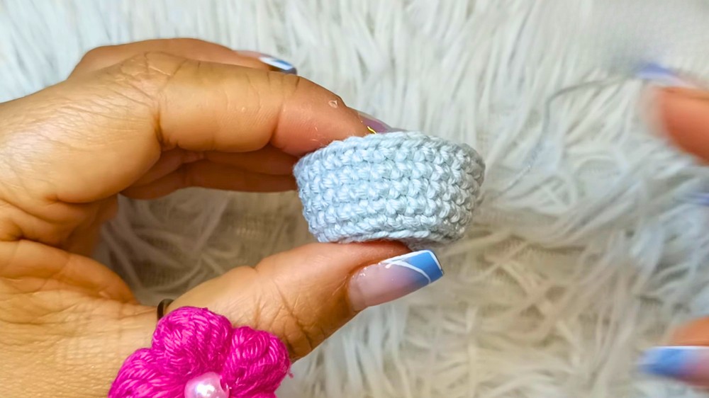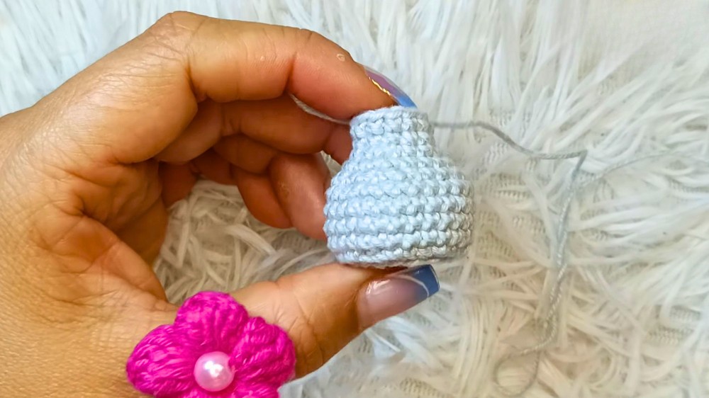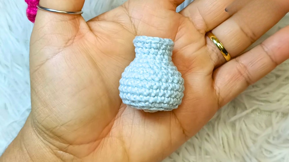 Once the base is complete, the body is built by working continuous rounds without increasing. Maintaining even tension here ensures the vase has a smooth and uniform structure.