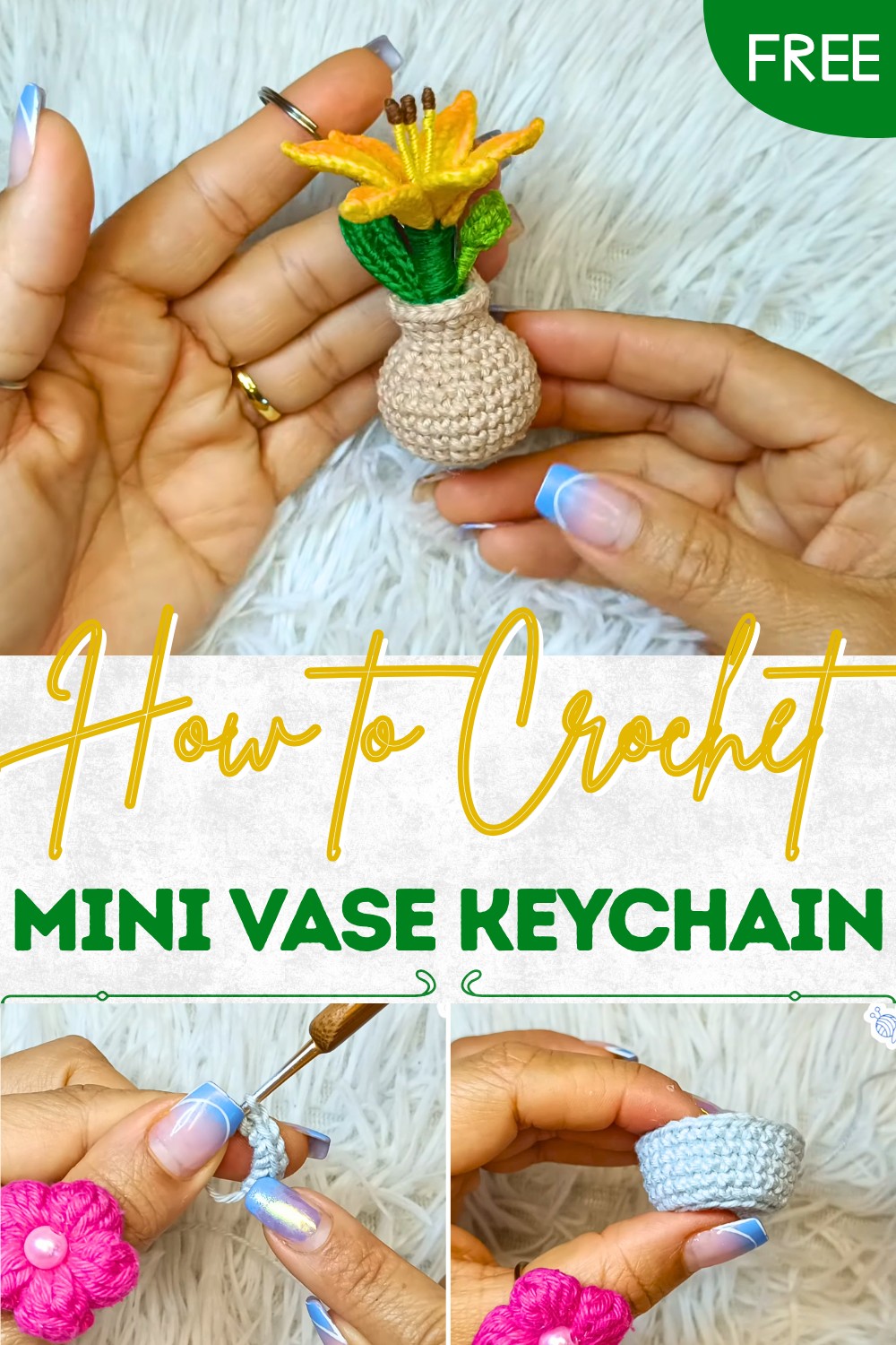 Step-by-Step Crochet Mini Vase Keychain Pattern for Pretty Details