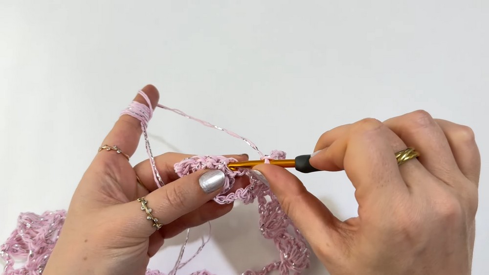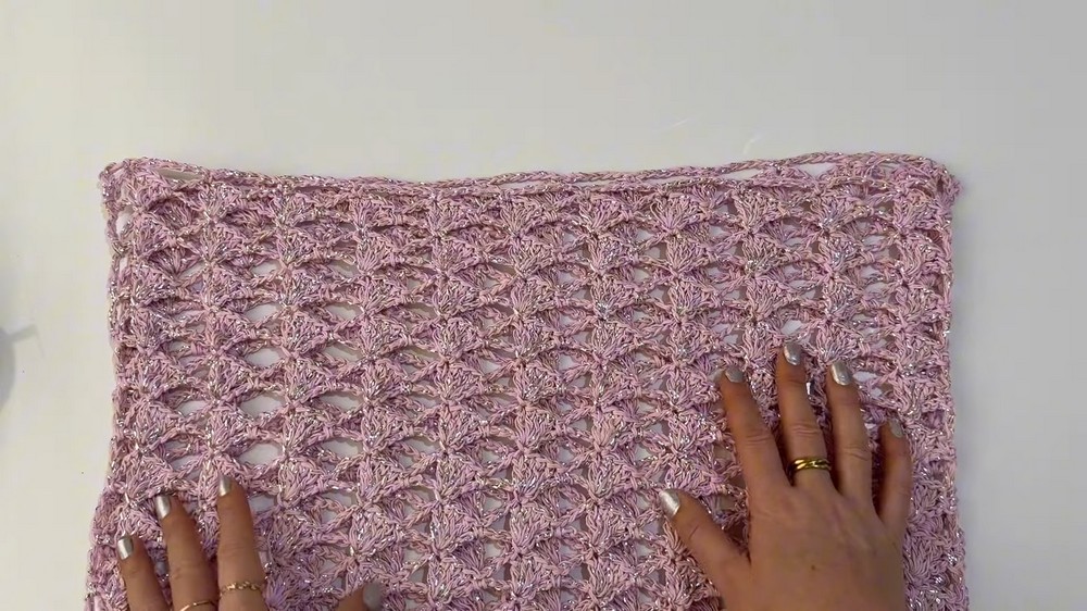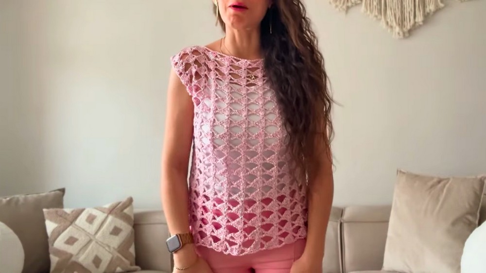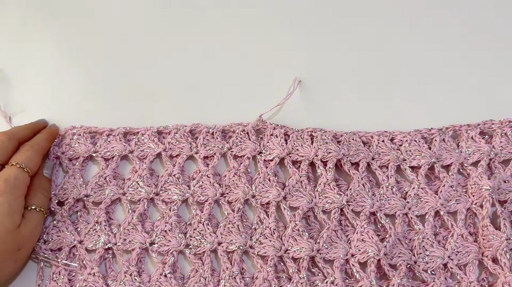 To begin, the pattern uses a foundation chain tailored to fit the bust or width measurements. The signature mesh effect is achieved by combining chain stitches and skipping spaces, forming perfect openings across the rows.