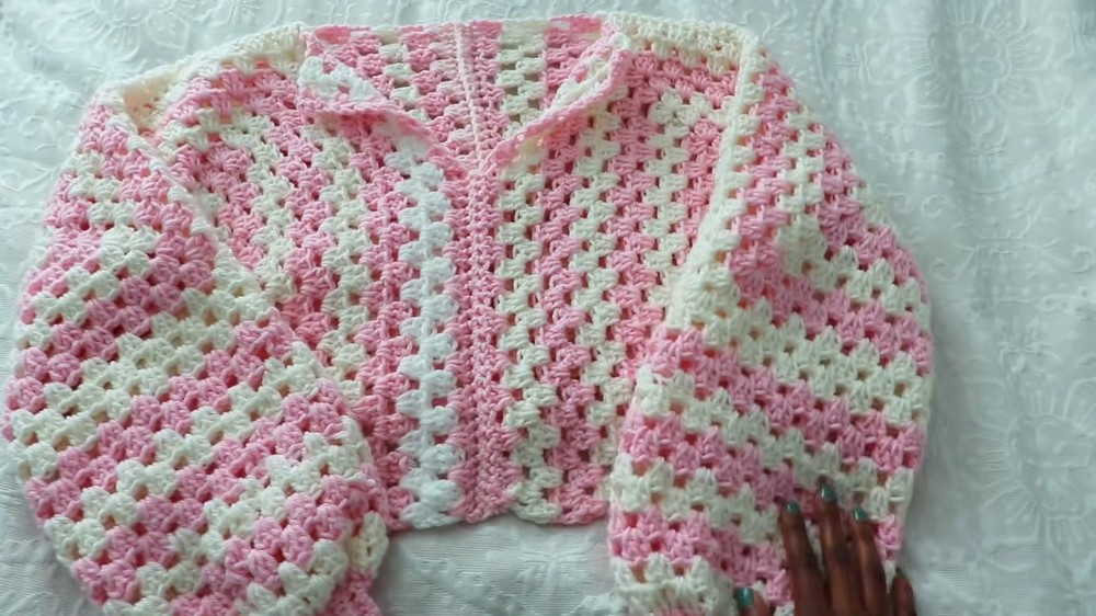 - The sweater is based on two hexagon granny squares that are folded and seamed to form the body and sleeves.