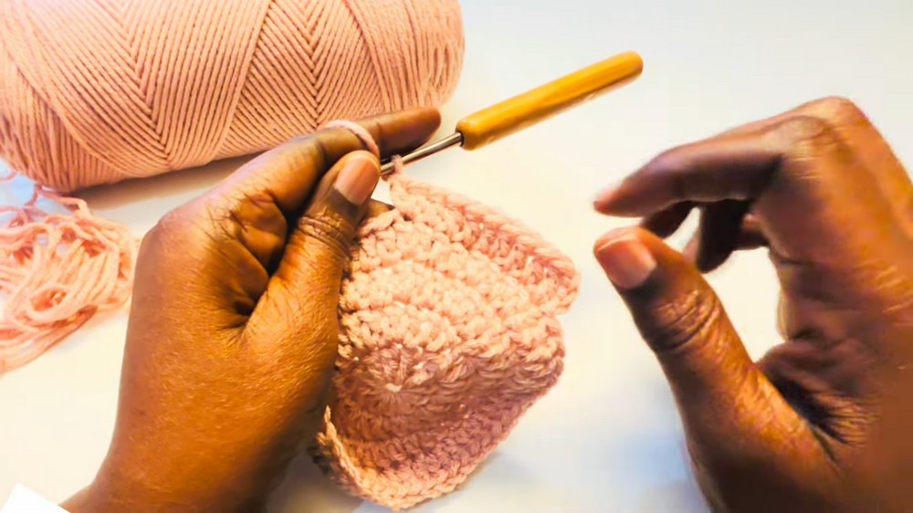 - Work 1 dc in the front loop only of each stitch around (creates subtle brim texture).
