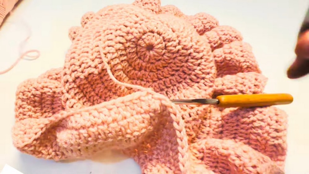 - Work 2 dc in each st around (increase brim).