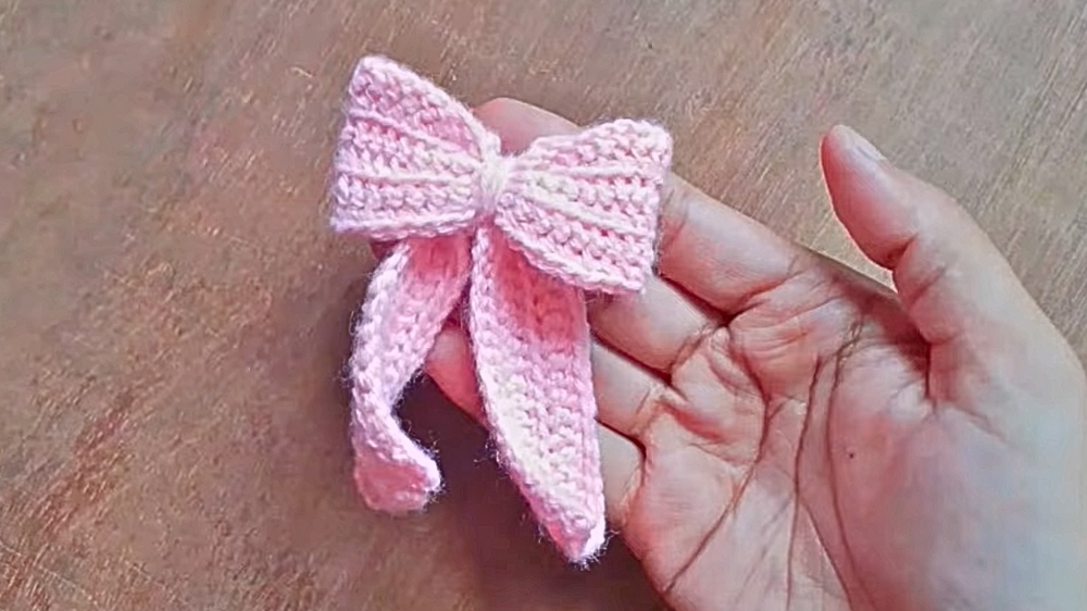 Conclusion: You have now successfully completed your crochet bow. The finished product is a simple and elegant accessory that can be used for various purposes.
