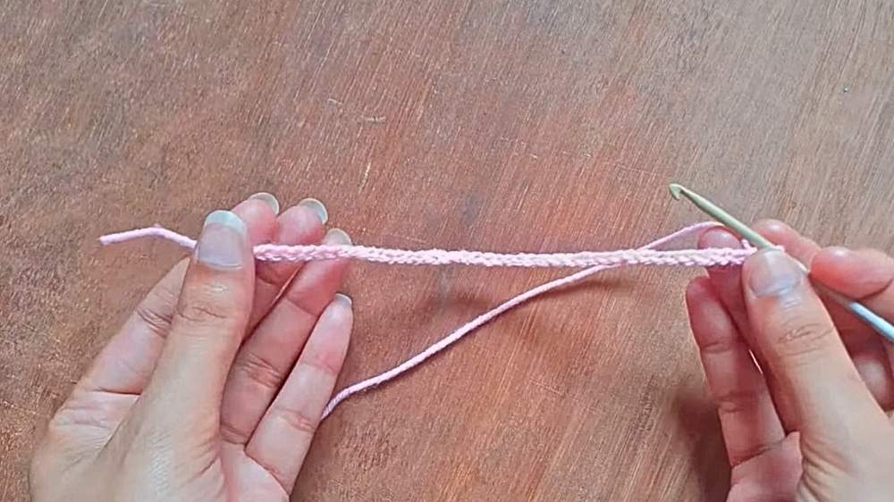 Starting with a foundation chain, the pattern carefully guides you through creating a small rectangle of double crochet stitches.