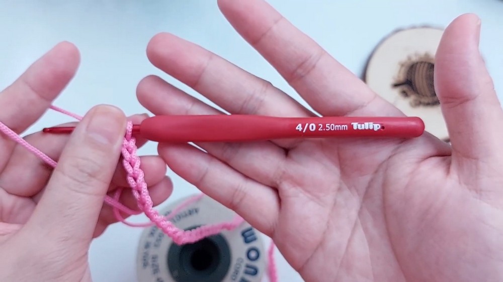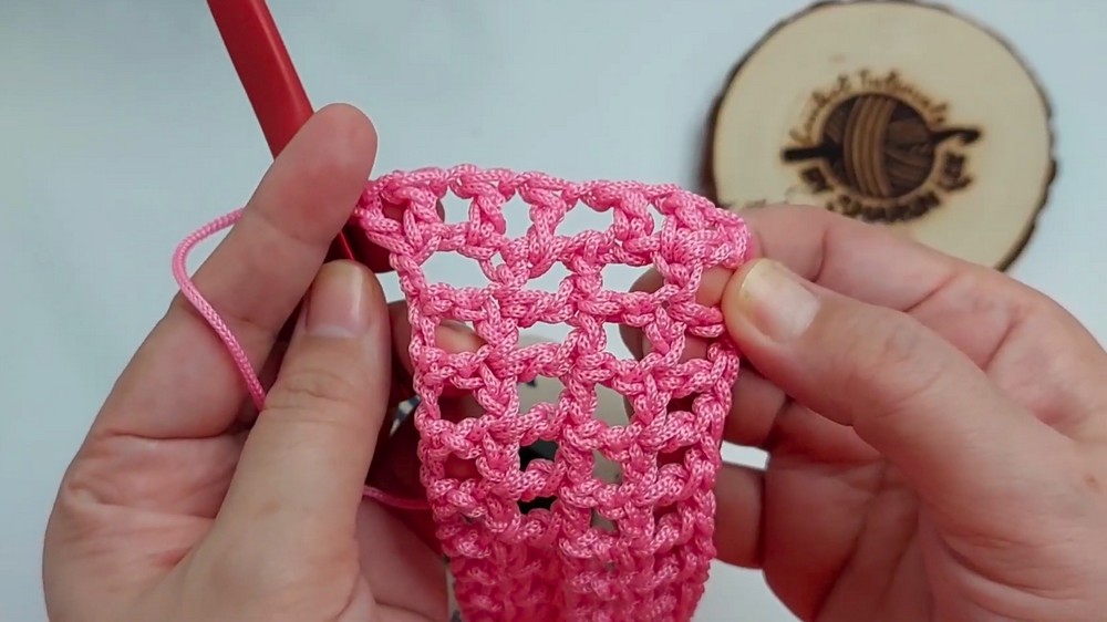 To start, the base is worked in rows using a neat square mesh stitch. Begin by making a slip knot, followed by a chain of 65 stitches (or adjust the count depending on your desired size).