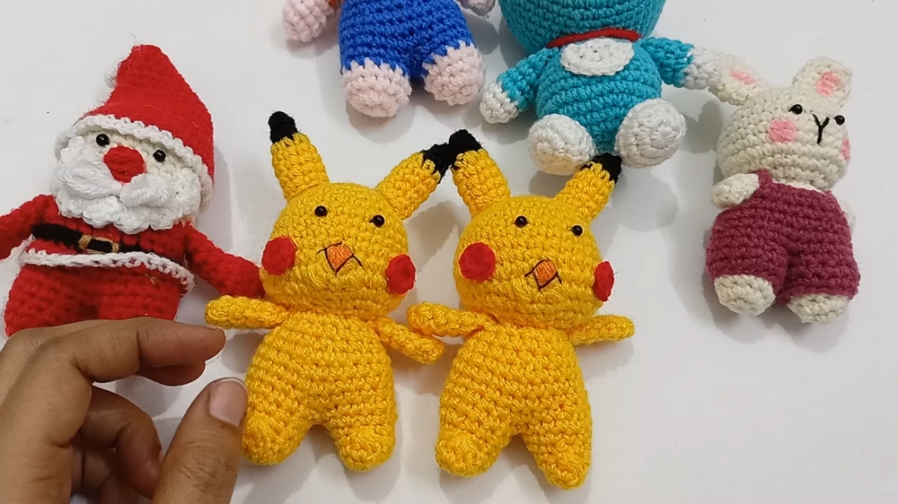 In this tutorial, the creator from the “Radhe Krishna Crochet” YouTube channel demonstrates how to crochet a Pikachu soft toy, referred to as “Pikikachu”, using simple techniques, materials, and a detailed approach. The final product is an adorable Pikachu figure that’s less than 5 inches in height. This toy is part of a larger crochet collection that includes other cartoon characters like Doraemon, Santa Claus, Bunny, and Hello Kitty. The project is beginner-friendly, creative, and makes use of basic crochet skills, with an end goal of decorating baby cradles or other home spaces.