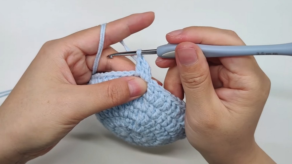 The pattern starts with the base of the lemon, crocheted in continuous rounds to achieve a smooth and seamless appearance. Using single crochet stitches, the body is shaped into a rounded form, with gradual increases for symmetry.