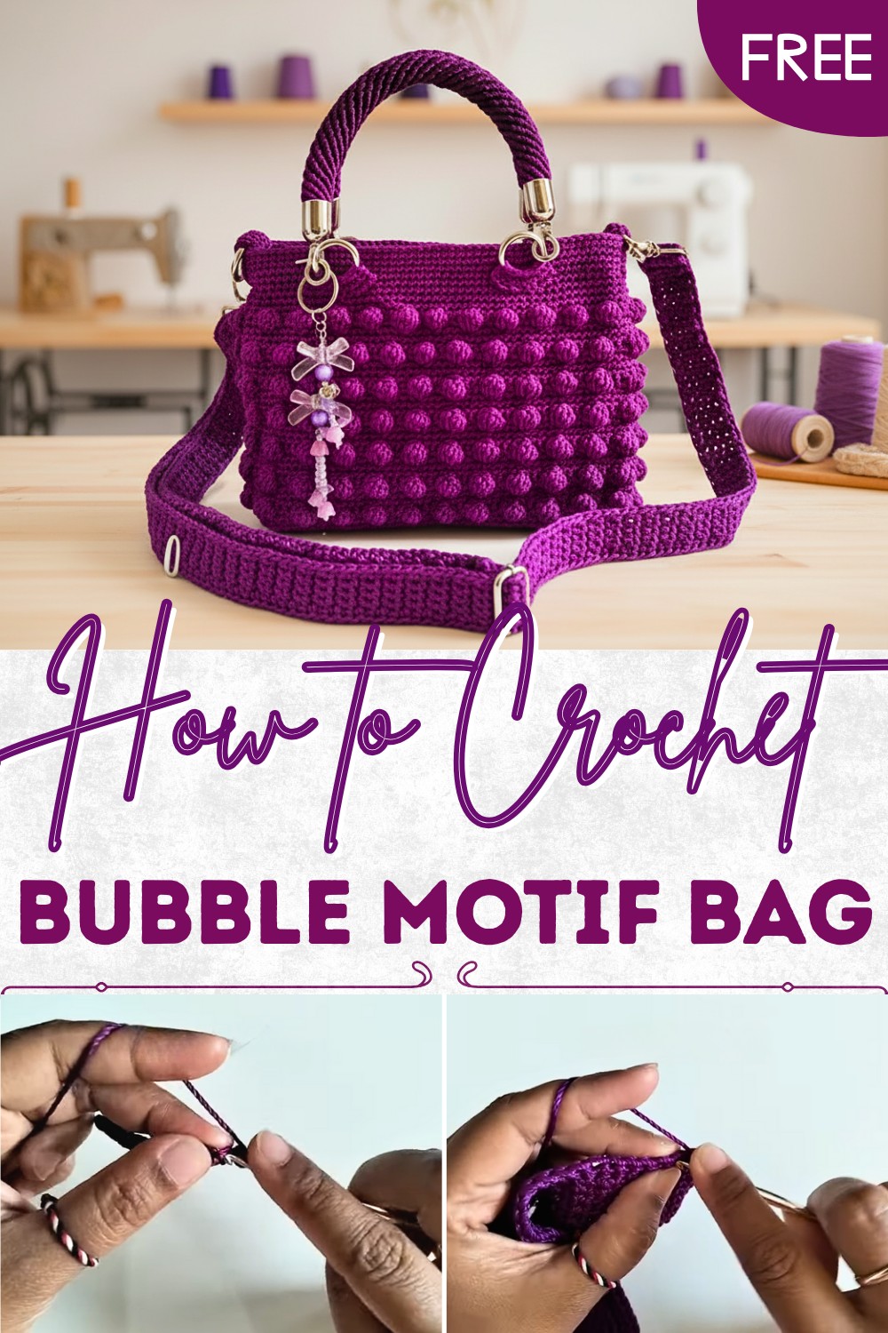 This crochet bubble motif bag is a blend of style and function, offering a unique look paired with practicality. The step-by-step tutorial makes it accessible for crocheters of any skill level, while its versatility in design allows it to suit various needs. Grab your materials and enjoy crocheting this timeless and trendy piece to elevate your accessory game.