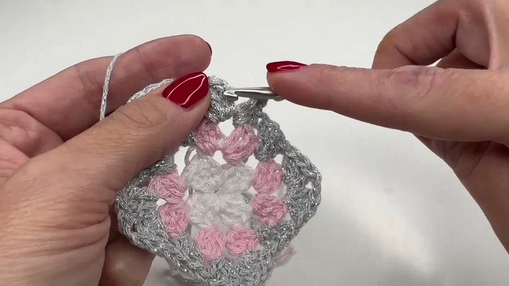 - For the corners, follow this sequence: (3 double crochets, chain 2, 3 double crochets).