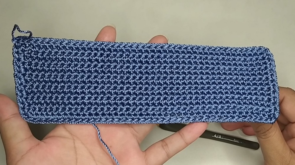 - Rotate the rectangle and create single crochets in every loop along the perimeter.