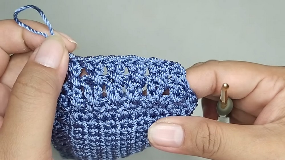 - Crochet 1 single crochet in each hole until you reach the marker.