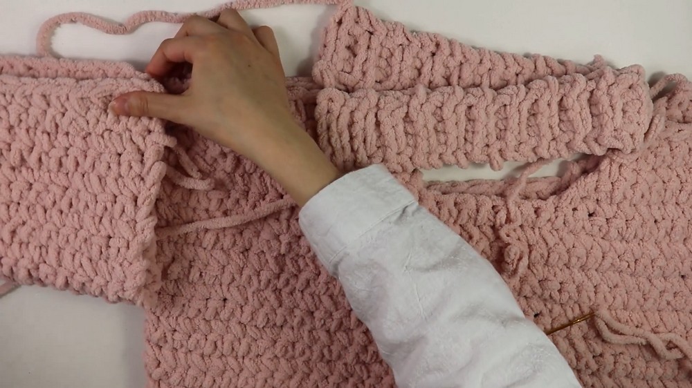 - Fit: Leave 6.5” (16.5 cm) at armholes when seaming sides for sleeves.