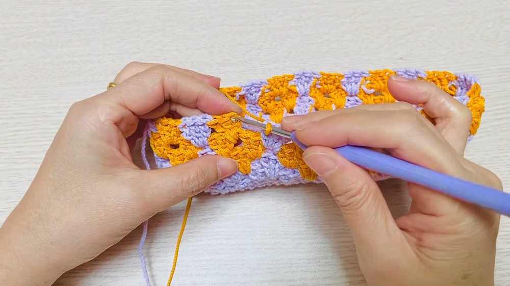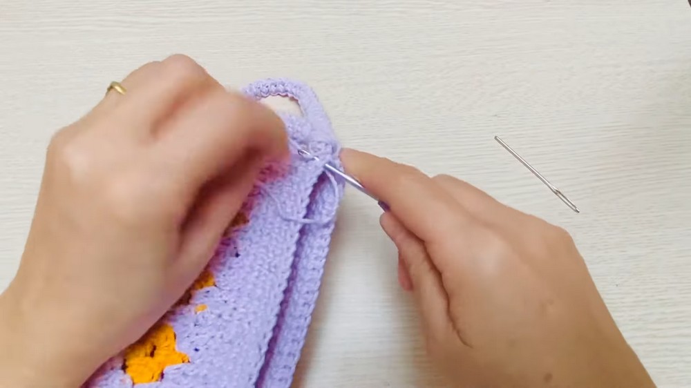 The pattern incorporates slip stitches to close edges seamlessly, enhancing the overall quality and durability of the purse.