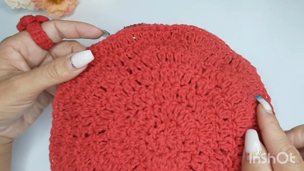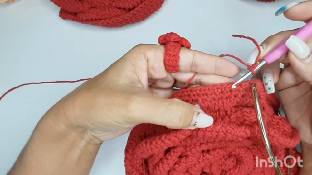 - Work 1 sc in each st across the handle section and the adjacent 7 sc on both sides.