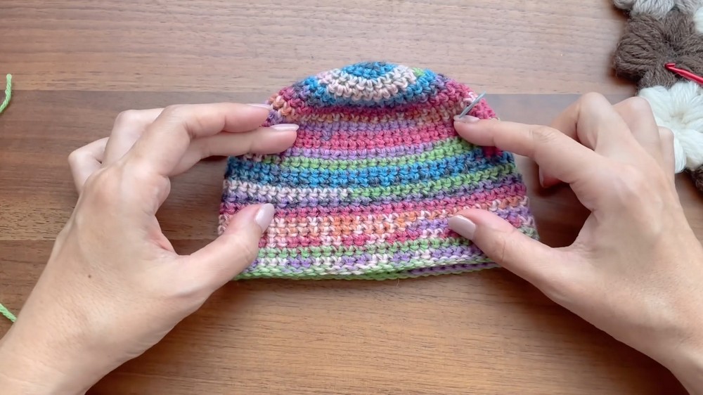 - Mark the beginning of the side rounds with a stitch marker.