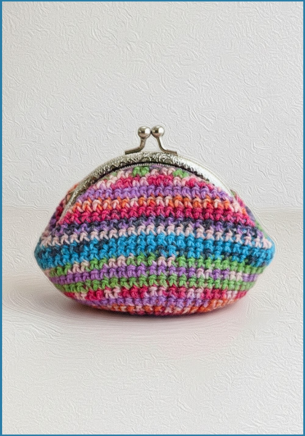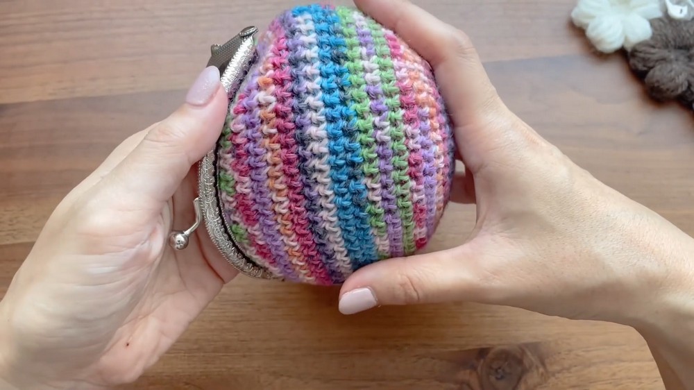 - The size matches a 10–11cm metal purse frame, but the pattern can be adjusted for other sizes by adding/subtracting increase rounds.
