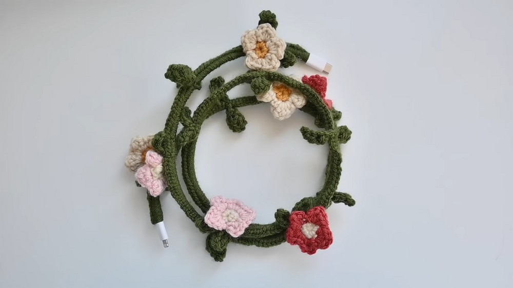 With this delightful crochet project, you get to blend functionality with charm—transforming your ordinary charger cable into a beautiful and unique piece of work. The combination of practical protective features and the delicate vine, leaf, and flower embellishments ensures that this project is both useful and visually appealing. Even as a beginner, you can complete this in a single day, making it a perfect quick project to try.