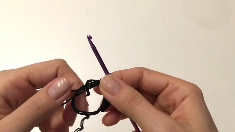 - Use the black yarn and a 3.5 mm hook.