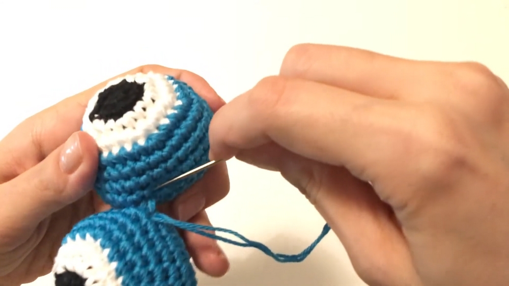 - Continue crocheting single crochets around for four rows if you want the eyes to be more extended.