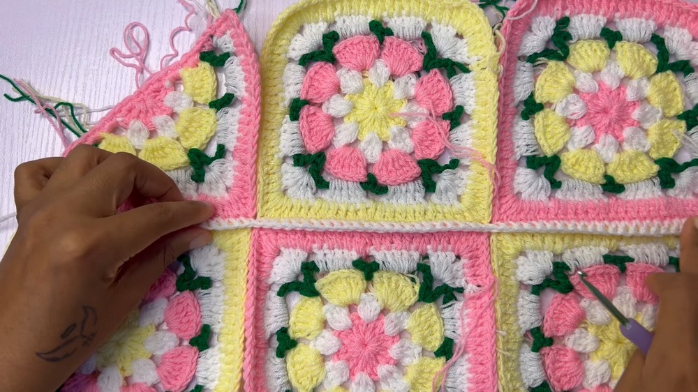 Take your time with each granny square and triangle to ensure consistency in size and stitch quality. Accurate measurements and organized laying out of panels before joining are key to avoiding misalignment.